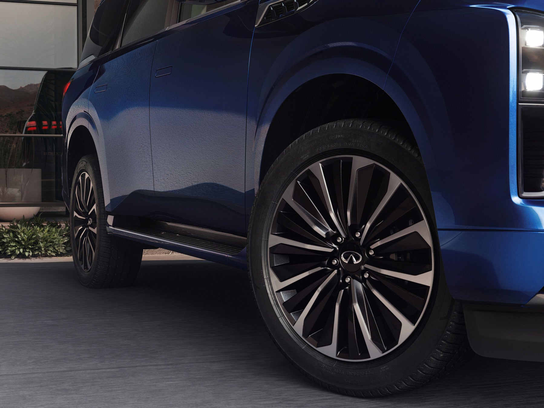 The 2026 QX80’s Invisible Hood View technology lets you see QX80’s front wheels through its hood, allowing for exceptionally precise maneuvering when driving and parking.[*]