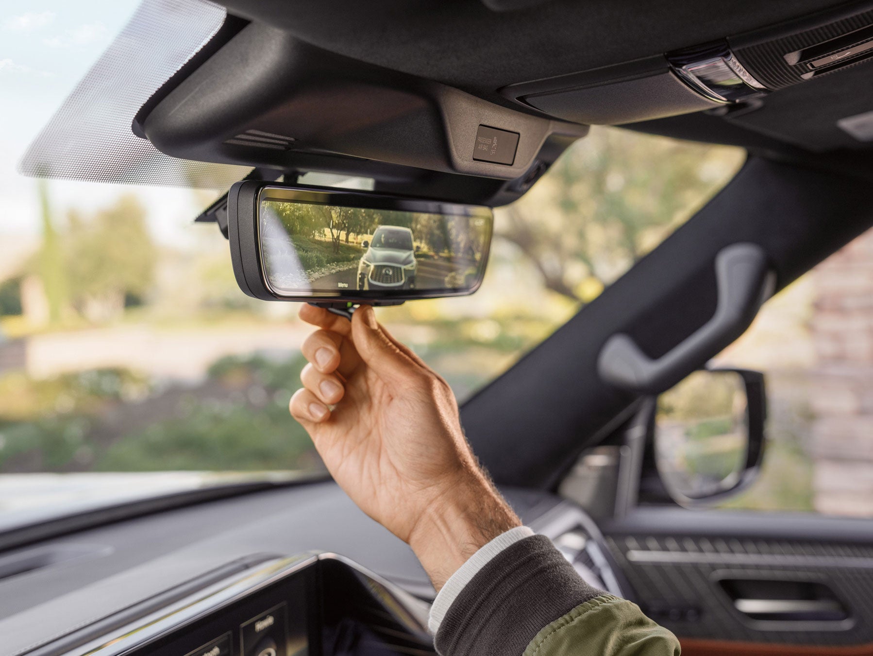 QX80’s frameless Smart Rearview Mirror feeds high-definition video directly to your rearview mirror, helping to deliver a clear view of what’s behind you unobstructed by passengers or cargo.[*]