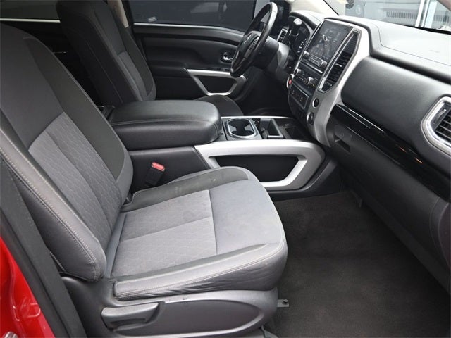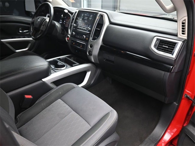 Red 2020 Nissan Titan SV RWD 9-Speed Automatic 5.6L V8 DOHC 32V LEV3-ULEV70 400hp 110V Outlet in Bed, 110V/12V Outlets In Back Of Center Console, 2 Illuminated USB-A Ports In Back Of Center Console, 4-Pin/7-Pin Wiring Harness Connector (Rear Bumper), Auto-Dimming Rear-View Mirror, Auto-Dimming Rearview Mirror w/UGDO, Black Front Tow Hooks, Chrome Interior Door Locks, Convex Spotter Mirror, Dedicated Configurable Cell Phone Holder, Dual Zone Automatic HVAC, Flat Floor Function w/Tie Down Hooks, Front & Rear Parking Sensors, Heated Front Captain's Chairs, Heated Manually Extendable Tow Mirrors, Intelligent Key System, Leather-Wrapped Steering Wheel, LED Tailgate Area Illumination, LED Under Rail Bed Lighting, Power Sliding Rear Window w/Defogger, Puddle Lamps, Radio: NissanConnect w/Navigation, Rain Sensing Wipers, Rear HVAC Vents, Rear Utility Bed Step, Receiver Hitch, Remote Engine Start on Key Fob, Spray-On Bedliner, SV Convenience Package, SV Tow Package, SV Utility Package, Traffic Sign Recognition (TSR), Trailer Brake Controller, Trailer Light Check Function On Key Fob, Universal Garage Door Opener, Utilitrack System w/4 Tie-Down Cleats.