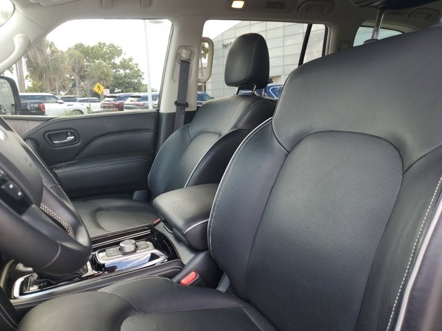 13 Speakers, 2.937 Axle Ratio, 3rd row seats: split-bench, 4-Wheel Disc Brakes, ABS brakes, Air Conditioning, Alloy wheels, AM/FM radio: SiriusXM, Anti-whiplash front head restraints, Auto High-beam Headlights, Auto tilt-away steering wheel, Auto-dimming door mirrors, Auto-dimming Rear-View mirror, Auto-leveling suspension, Automatic temperature control, Brake assist, Bumpers: body-color, Cargo Net, Cargo Package, Carpeted Cargo Mat, Center Console Tray, Compass, Console Net, Delay-off headlights, Driver door bin, Driver vanity mirror, Dual front impact airbags, Dual front side impact airbags, Electronic Stability Control, Emergency communication system: INFINITI InTouch, First-Aid Kit, Four wheel independent suspension, Front anti-roll bar, Front Bucket Seats, Front Center Armrest, Front dual zone A/C, Front fog lights, Front reading lights, Fully automatic headlights, Garage door transmitter: HomeLink, Heated door mirrors, Heated Front Bucket Seats, Heated front seats, Heated steering wheel, Illuminated entry, INFINITI Radiant Illuminated Kick Plates, Leather Shift Knob, Leather steering wheel, Leather-Appointed Seats, Literature Kit, Low tire pressure warning, Memory seat, Midyear Change, Navigation system: INFINITI InTouch Navigation, Occupant sensing airbag, Outside temperature display, Overhead airbag, Overhead console, Panic alarm, Passenger door bin, Passenger vanity mirror, Power door mirrors, Power driver seat, Power Liftgate, Power moonroof, Power passenger seat, Power steering, Power windows, Premium audio system: Bose, Premium Select Graphite Interior, Radio data system, Radio: Bose Premium Audio System w/13 Speakers, Rain sensing wipers, Rear air conditioning, Rear anti-roll bar, Rear reading lights, Rear seat center armrest, Rear window defroster, Rear window wiper, Reclining 3rd row seat, Remote keyless entry, Roof Rail Cross Bars, Security system, Speed control, Speed-sensing steering, Split folding rear seat, Spoiler, Steering wheel memory, Steering wheel mounted audio controls, Tachometer, Telescoping steering wheel, Tilt steering wheel, Traction control, Trip computer, Turn signal indicator mirrors, Variably intermittent wipers, Voltmeter, Wheels: 22" x 8.0" Dark Chrome Cast Aluminum-Alloy.