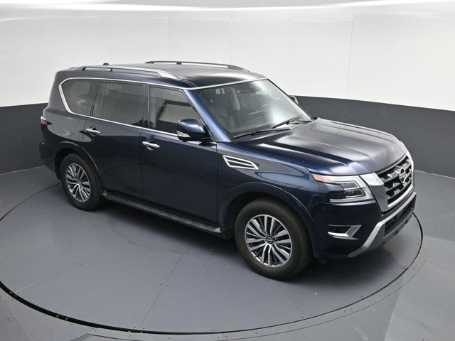 13 Speakers, 2.94 Axle Ratio, 2nd Row Captain's Chairs, 2nd Row Center Console w/Padded Armrest, 3rd Row Carpeted Floor Mats - Captain Seat, 3rd row seats: split-bench, 4-Wheel Disc Brakes, ABS brakes, Air Conditioning, Alloy wheels, AM/FM radio: SiriusXM, Anti-whiplash front head restraints, Auto High-beam Headlights, Auto tilt-away steering wheel, Auto-dimming door mirrors, Auto-dimming Rear-View mirror, Auto-leveling suspension, Automatic temperature control, Bose 13-Speaker Premium Audio System, Brake assist, Bumpers: body-color, Captain's Chairs Package, Delay-off headlights, Driver door bin, Driver vanity mirror, Dual front impact airbags, Dual front side impact airbags, Electronic Stability Control, Emergency communication system: NissanConnect Services, Exterior Parking Camera Rear, Four wheel independent suspension, Front anti-roll bar, Front Bucket Seats, Front Center Armrest, Front dual zone A/C, Front fog lights, Front reading lights, Fully automatic headlights, Garage door transmitter: HomeLink, Heated door mirrors, Heated Front Bucket Seats, Heated front seats, Heated steering wheel, Illuminated entry, Knee airbag, Leather Shift Knob, Leather-Appointed Seat Trim, Low tire pressure warning, Memory seat, Navigation System, NissanConnect featuring Apple CarPlay and Android Auto, Occupant sensing airbag, Outside temperature display, Overhead airbag, Overhead console, Panic alarm, Passenger door bin, Passenger vanity mirror, Power door mirrors, Power driver seat, Power Liftgate, Power moonroof, Power passenger seat, Power steering, Power windows, Premium audio system: Bose, Radio: NissanConnect w/SiriusXM, Rear air conditioning, Rear anti-roll bar, Rear reading lights, Rear seat center armrest, Rear window defroster, Rear window wiper, Reclining 3rd row seat, Remote keyless entry, Security system, Speed control, Speed-sensing steering, Speed-Sensitive Wipers, Split folding rear seat, Spoiler, Steering wheel memory, Steering wheel mounted audio controls, Tachometer, Telescoping steering wheel, Tilt steering wheel, Traction control, Trip computer, Turn signal indicator mirrors, Variably intermittent wipers, Voltmeter, Wheels: 20 x 8J Painted Alloy.