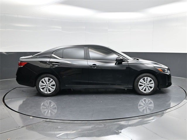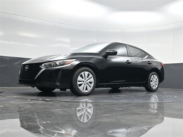 Black 2025 Nissan Sentra S FWD CVT with Xtronic 2.0L I4 DOHC CVT with Xtronic, Charcoal Cloth, Auto High-beam Headlights, Blind Spot Warning, Brake assist, Bumpers: body-color, Cloth Seat Trim, Driver door bin, Driver vanity mirror, Front reading lights, Illuminated entry, NissanConnect featuring Apple CarPlay and Android Auto, Power door mirrors, Rear Parking Sensors, Remote keyless entry.