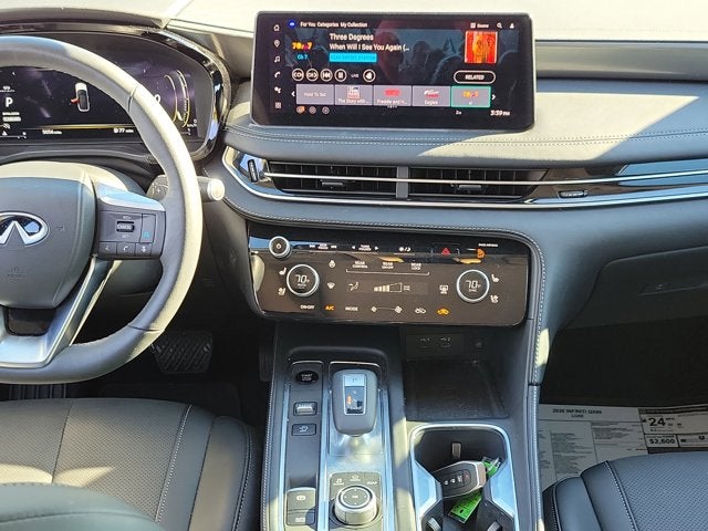 This QX60 LUXE is meticulously equipped to provide unparalleled comfort, convenience, and safety. Enjoy the seamless integration of a Bose Performance Series 17-Speaker Sound System, dual-zone automatic climate control, and a panoramic moonroof that floods the cabin with natural light.